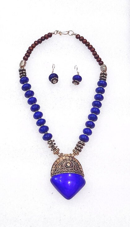 Admiral Blue Wonderful Classy Stone Beads Necklace Set with Pendulum Pendant