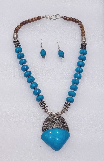 Cerulean Blue Wonderful Classy Stone Beads Necklace Set with Pendulum Pendant