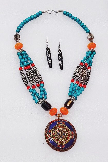 Multicolor Wonderful Classy Stone Beads Necklace Set With Round Pendant