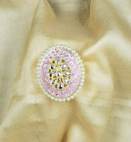 Baby Pink Color Meena Kari Kundan Finger Ring