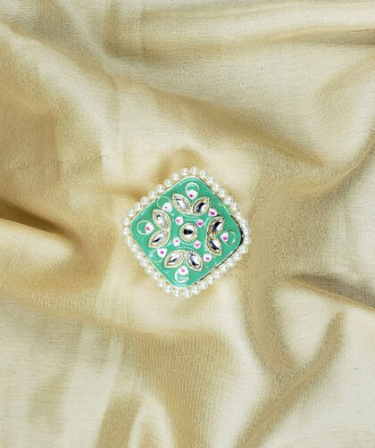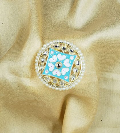 Sky Blue Color Kundan Meena Kari Finger Ring