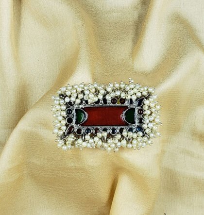 Maroon Color Meena Kari With Pearl Coated Finger Ring
