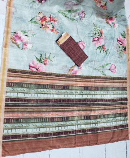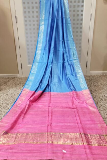 Sky Blue & Light Pink Color Ghicha Silk Saree