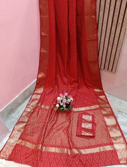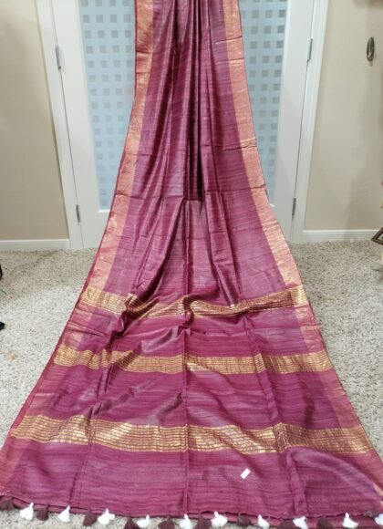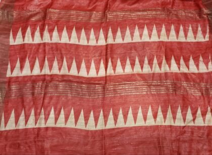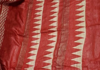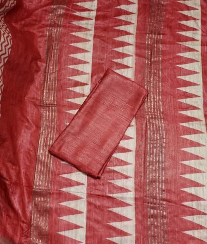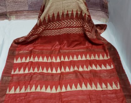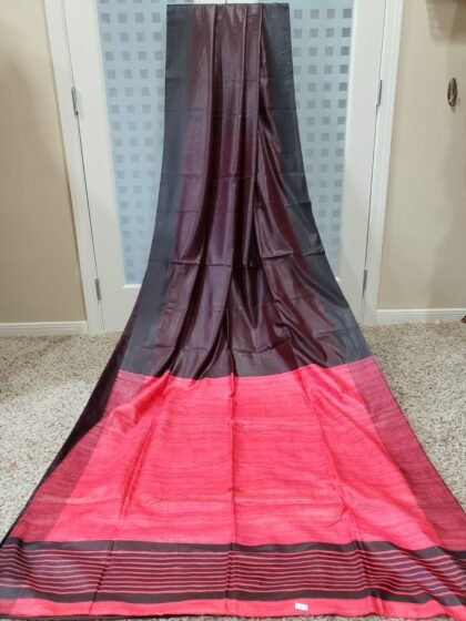 Dark Chocolate & Light Red Color Ghicha Silk Saree
