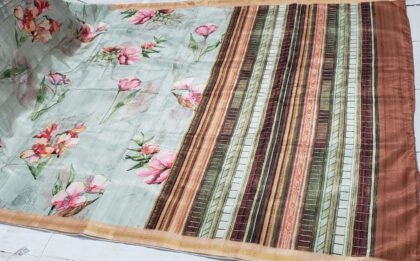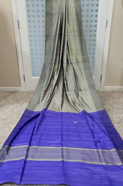 Ash Gray & Rose Red Color Ghicha Silk Saree