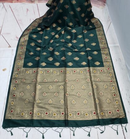 Bottle Green Color Manipuri Ghicha Silk Saree