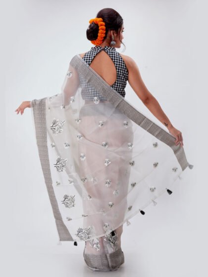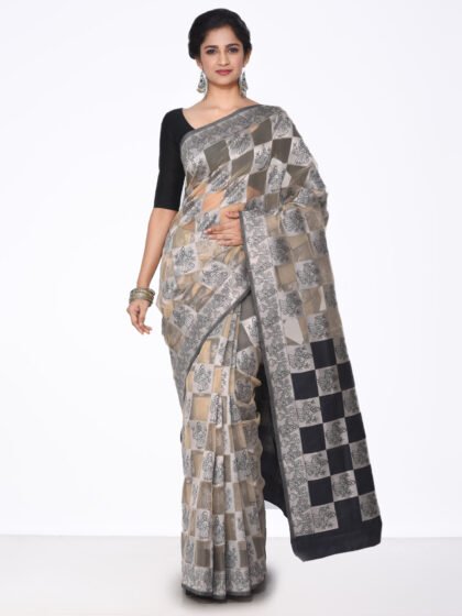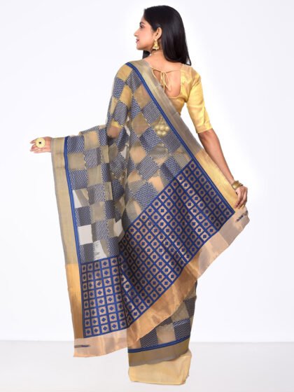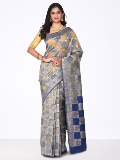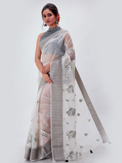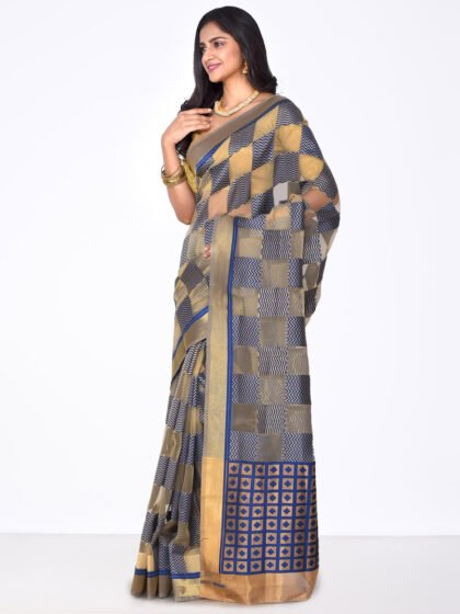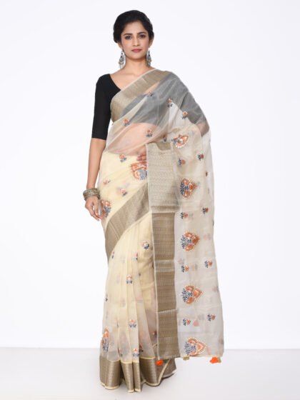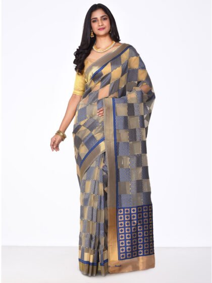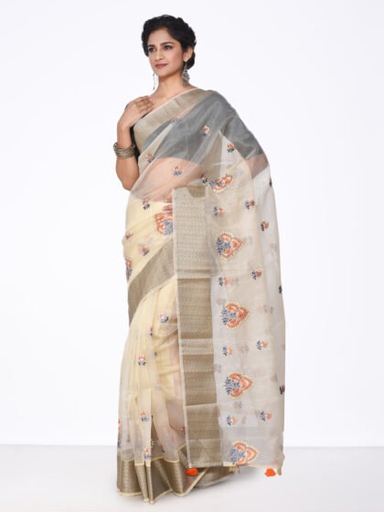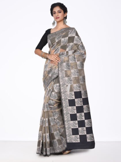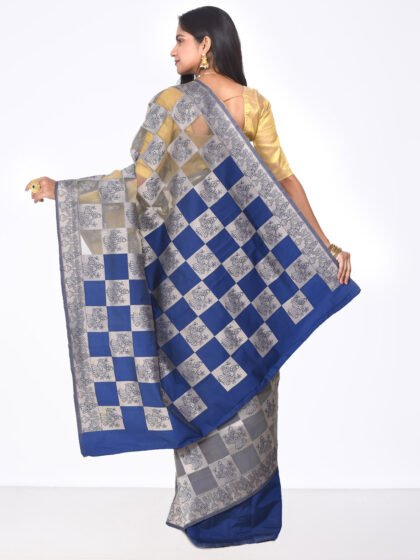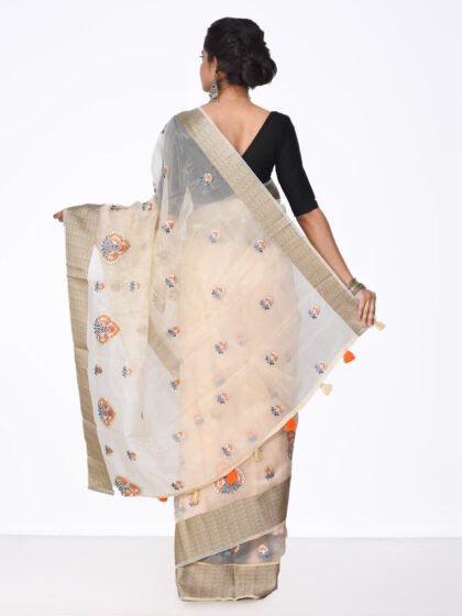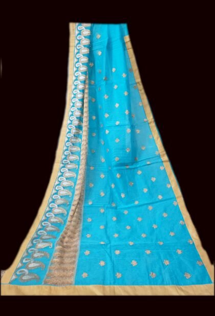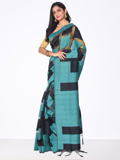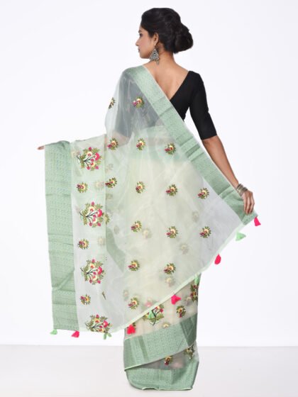 Sea Green Multi Color Samo Silk With Organza Jacket Blouse