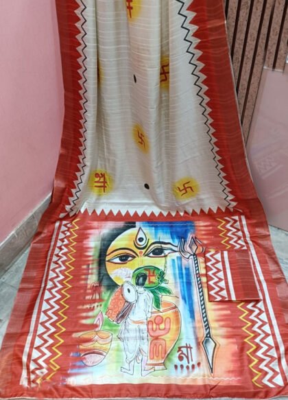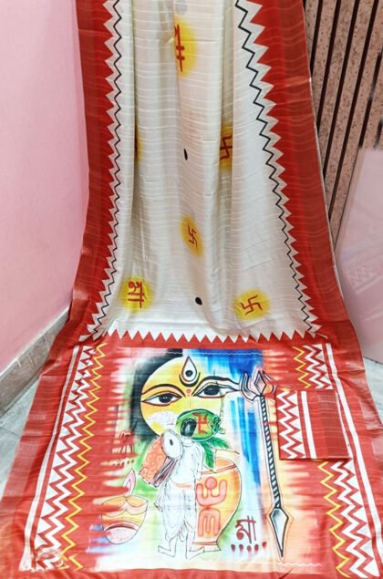 Off-White & Red Color Bapta Tussar Saree