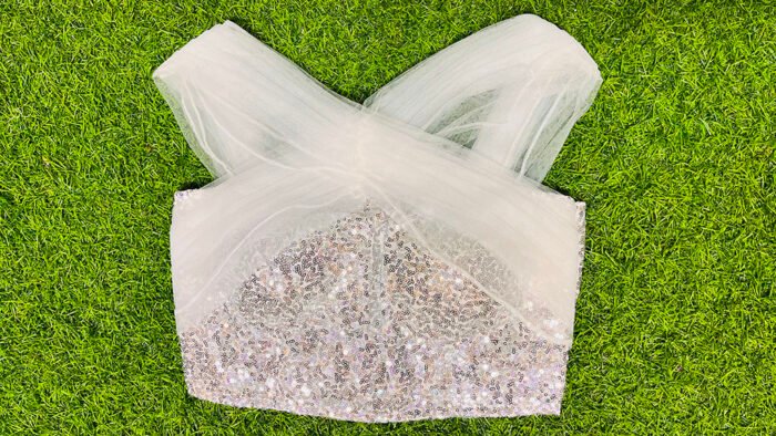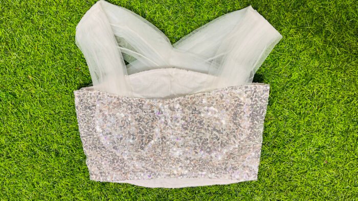This is a White Color Net Blouse with Sequin. This is a White Color Net Cross V-Neckline Blouse in Frontside and Square Neckline in Backside. This is a Princess Cut Padded Sleeveless Blouse with Sequin Embroidery and Net with Back Open. You can team it up with any contrast-colored Traditional Saree. We assure the authenticity and quality of our products..