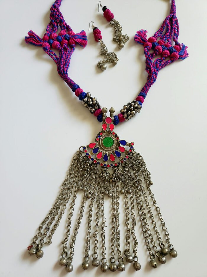Details: Vintage  Afghan Pendant & Earrings With Adjustable Tassel