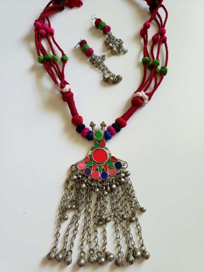 Details: Vintage Afghan Pendant & Earrings With Adjustable Tassel