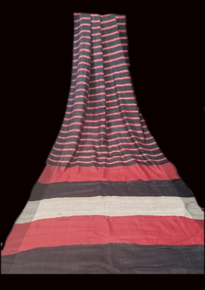 Ash Grey and Rose Red Color Ghicha Silk Saree Multicolor Stripe