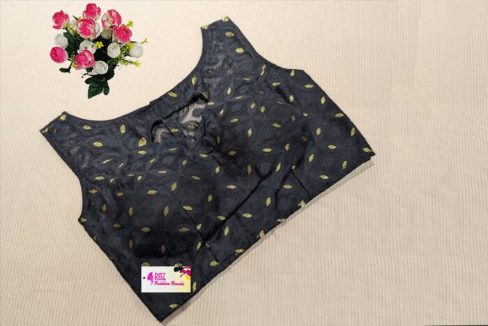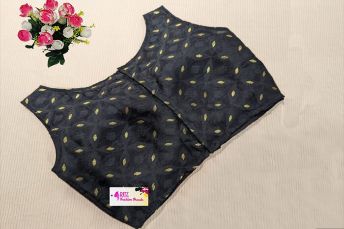 This is a Black Color Jamdani Blouse. It is Sweetheart Neckline in Frontside and Boat Neckline in Backside. This is a Princess Cut, Padded, Sleeveless Blouse with Back Open. You can team it up with any contrast colored Printed/Traditional Saree.