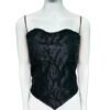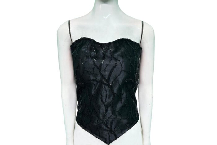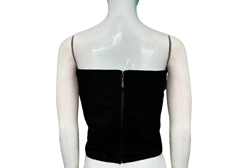 This is a Black Color Embroidered Net Corset Blouse. This is Sweetheart Neckline in Frontside & Band Neckline in Backside with a Zip. This is a Princess Cut, Padded, Corset Blouse with Back Open. You can team it up with any contrast-colored Traditional/Printed Saree.
