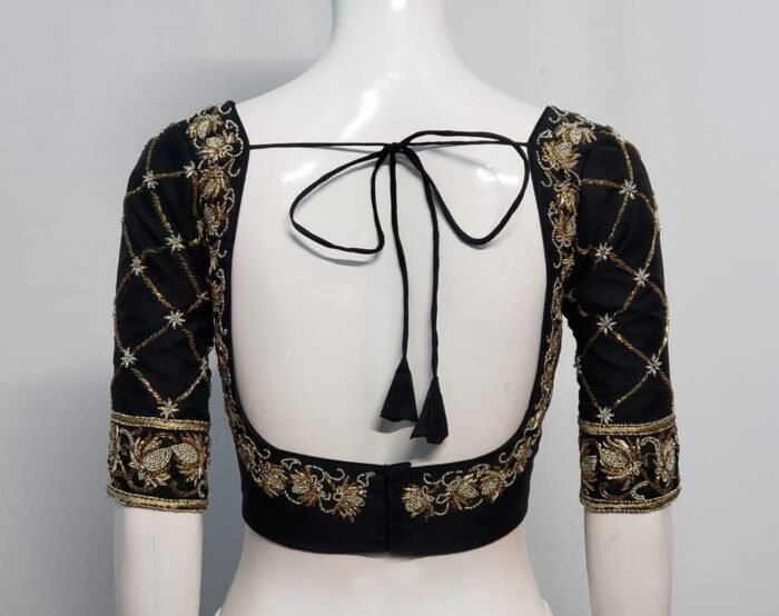 Be the first to review “Black Color Hand Embroidered Samo Silk Blouse”