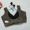 This is a Black Multi Color Raw Silk Crystal Blouse. This Blouse is Sweetheart Neckline in Frontside & U-Neckline in Backside with Tie-Up. This is a Princess Cut, Padded, Sleeveless Blouse with Back Open. You can team it up with any contrast-colored Traditional/Printed Saree.