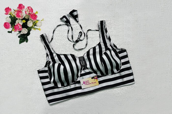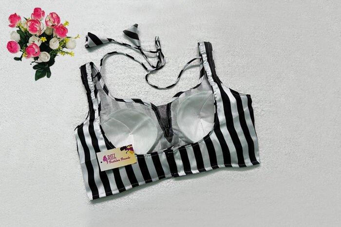 This is a Black & White Satin Printed Blouse. This is Sweetheart-Neckline in Frontside & U-Neckline in Backside with Tie-Up. This is a Princess Cut, Padded, Sleeveless Blouse with Back Open. You can team it up with any contrast-colored Traditional/Printed Saree.