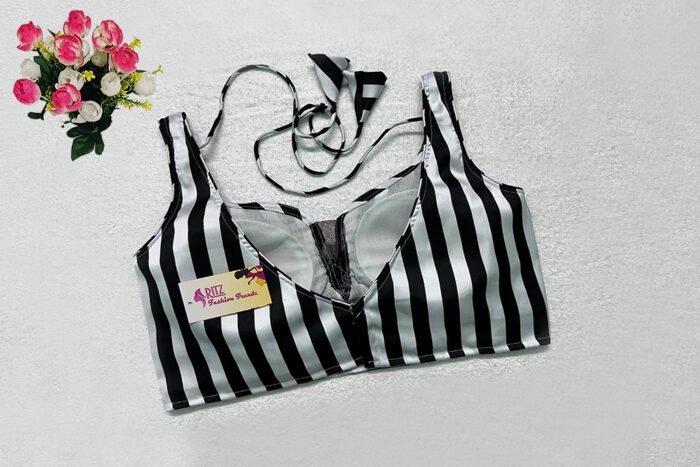 This is a Black & White Satin Printed Blouse. This is Sweetheart-Neckline in Frontside & V- Neckline in Backside with Tie-Up. This is a Princess Cut, Padded, Sleeveless Blouse with Back Open. You can team it up with any contrast-colored Traditional/Printed Saree.