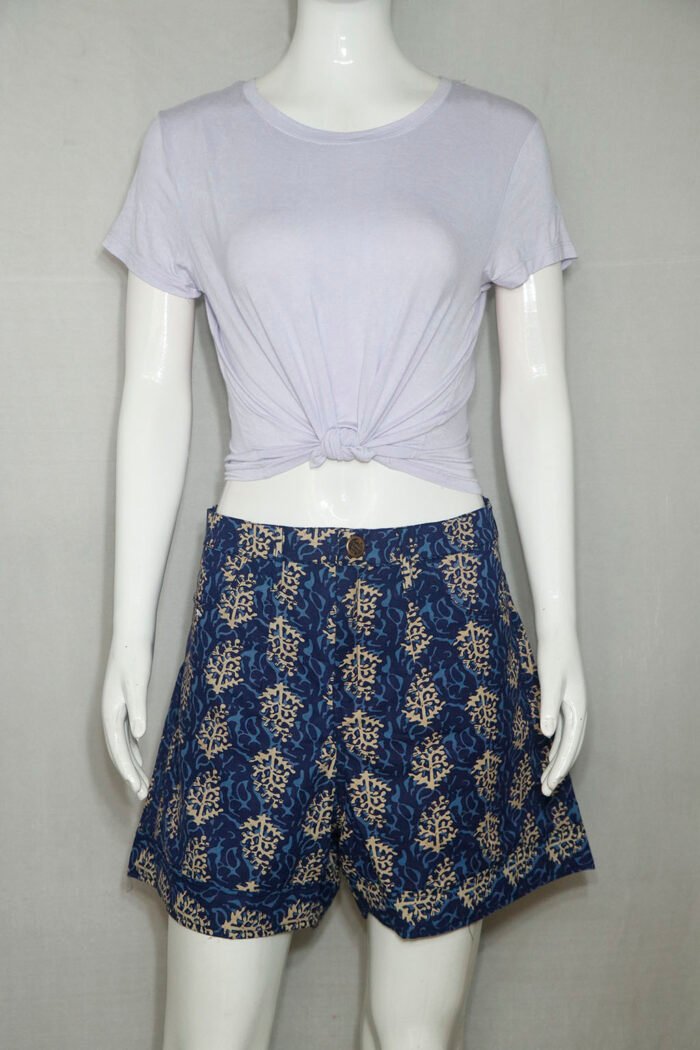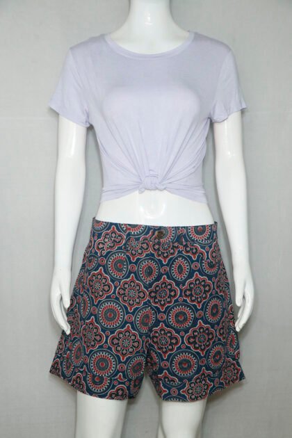 This is a Blue Color Cotton Ajrakh Printed Short Pant.