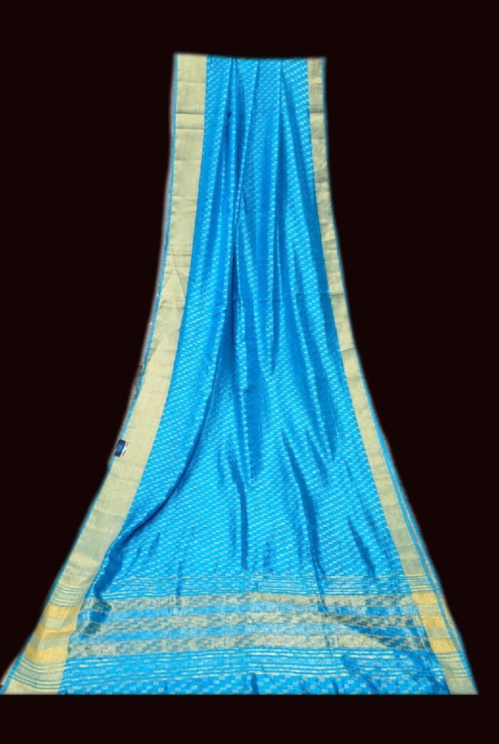 Cerulean Blue Color Blended Silk Saree with Golden Border
