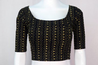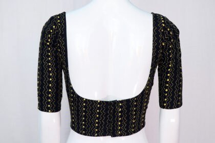 This is an Off-White Multi Color Cotton Printed Blouse. It is Leaf Neckline in Frontside and U-Neckline in Backside with Tie Up. This is a Choli-Cut, Non-Padded (Used Sponge) Blouse. This Blouse is Glass Sleeve and Front Open. You can team it up with any contrast colored Traditional Saree.