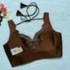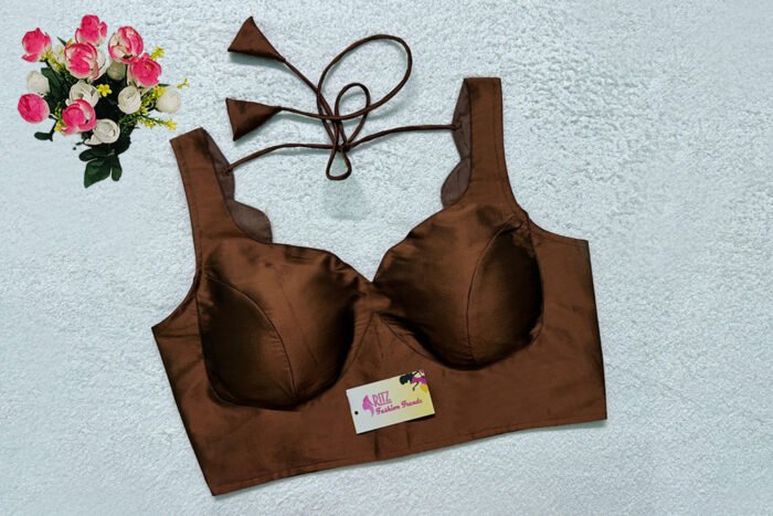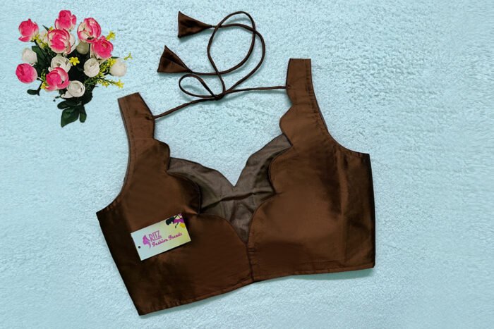 This is a Copper Color Samo Silk Blouse. This Blouse is Sweetheart Neckline in Frontside & U-Neckline in Backside with Tie-Up. This is a Princess Cut, Padded, Sleeveless Blouse with Back Open. You can team it up with any contrast-colored Traditional/Printed Saree.