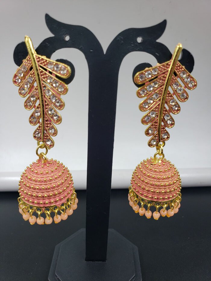Jhumka is a Style Of Earing Worn By Woman of The Indian Subcontinent. This Is A Peach Color Jhumka With Stone And Beds Which Enhance Women Beauty Over All.