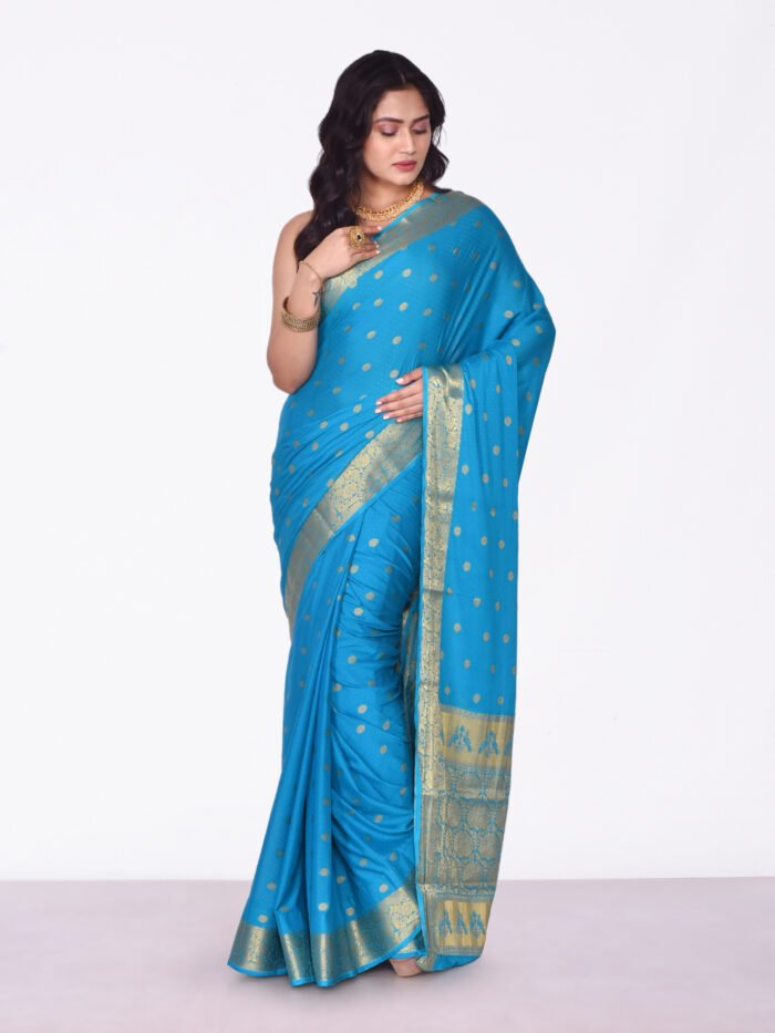 Blue Color Crepe Silk Saree.