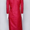 This is a Crimson Red Color 3Ply Pure Silk Kurti. It is Round Neckline in Frontside with Open. This Kurti is Long Sleeve and Knee Length.