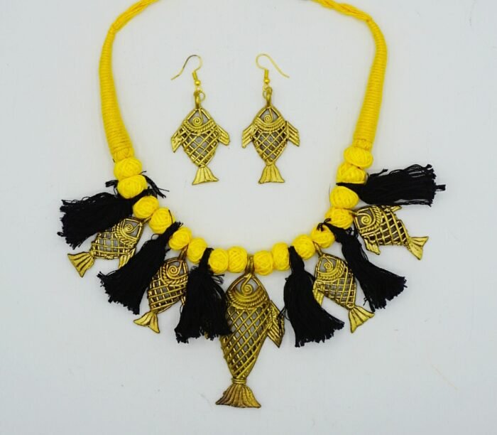 Details: Fish Design Tribal Necklace & Earrings With Adjustable Tassel
