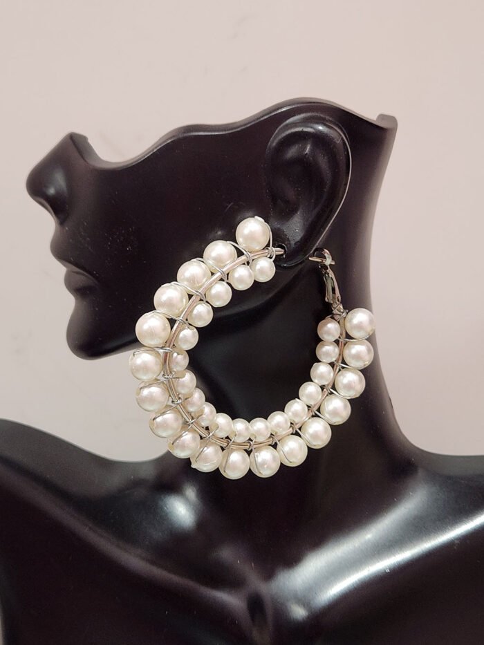 double Layered Pearl Beaded Ear-Ring. This Trendy Ear-Ring will look Wonderful with Fancy & Traditional Saree.