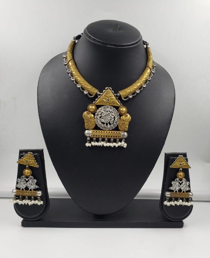 Silver Replica Necklace Set with Pearl Beads