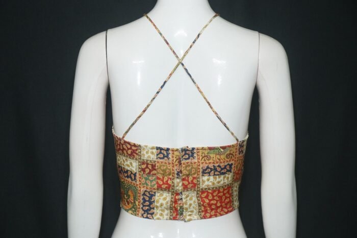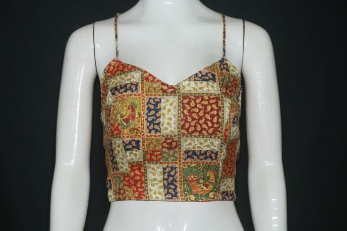 This is a Multi Color Rayon Spaghetti with Digital Work. It is a Single Spaghetti Strap with V-Neckline in Frontside and Band Neckline with Criss Cross Strap in Backside. This is a Princess Cut Padded Sleeveless Blouse with Back Open. You can team it up with any contrast-colored Traditional/Printed Saree. We assure the authenticity and quality of our products.