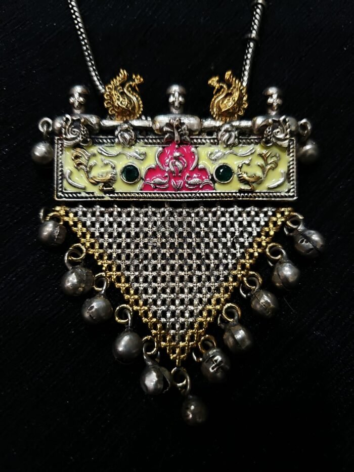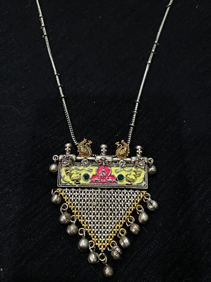 Detais:  Alloy Metal  Peacock Motif Pendant & Green Stone With Duel Tone Silver.