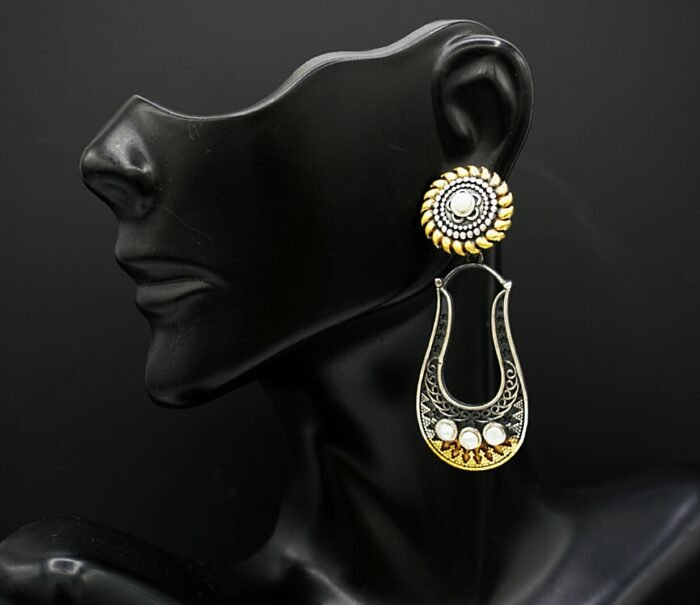 Details : White Stone Ear Ring With Meenakari Work & Dual Tone.