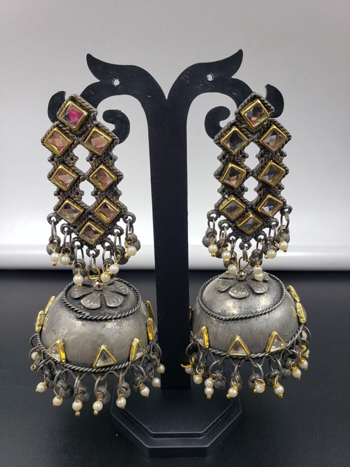 Jhumka is a Style Of Earring Worn By Woman of The Indian Subcontinent. This is a German Silver Jhumka with Beads Which Enhance Women Beauty Over All.