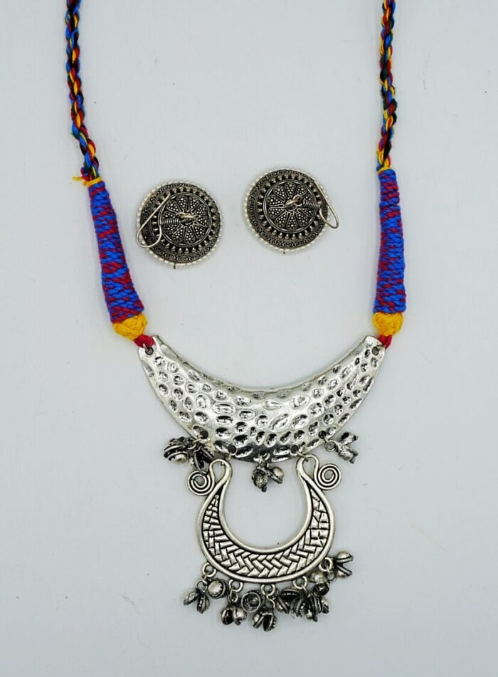 Details: Tribal Design Necklace &  Jhumka With Adjustable Tassel