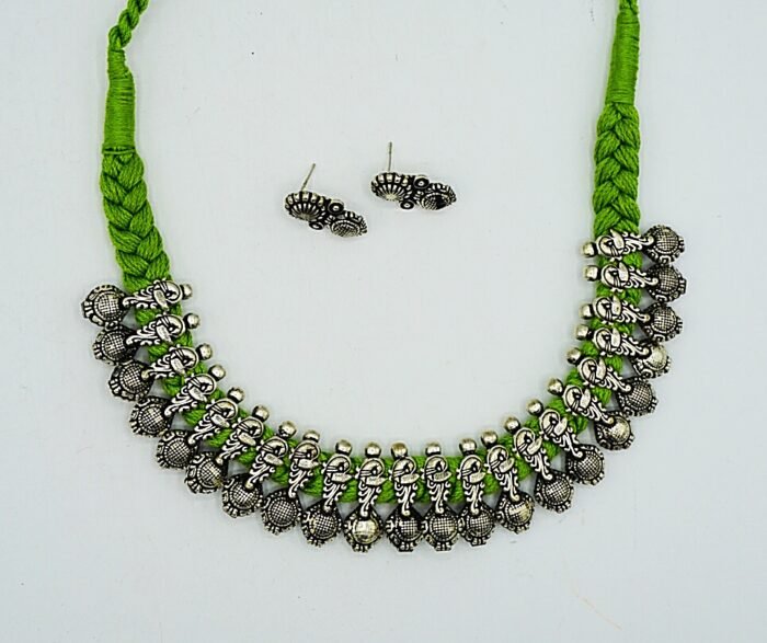 Details: German Silver Necklace & Stud Earrings With Adjustable Tassel