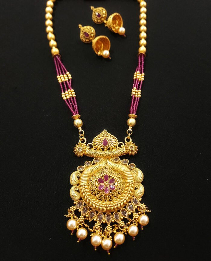 Gold Plated Necklace Set with Pearl Beads & Jhumka.