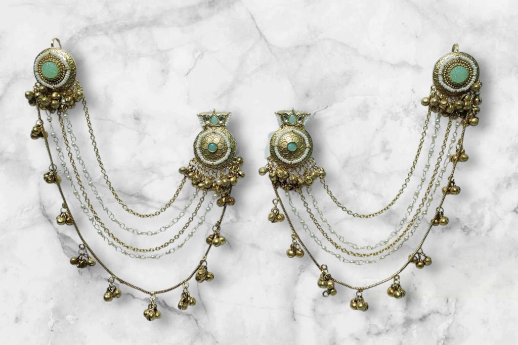 Gold Polish Kashmiri Stud Ear Chain Earrings.