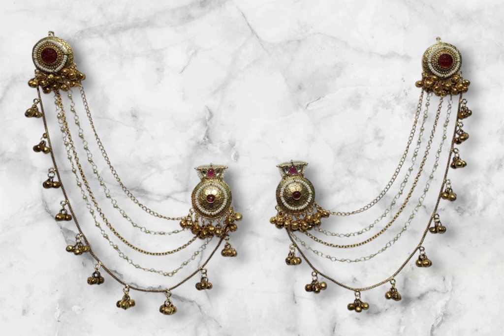 Gold Polish Kashmiri Stud Chain Ear-Ring.