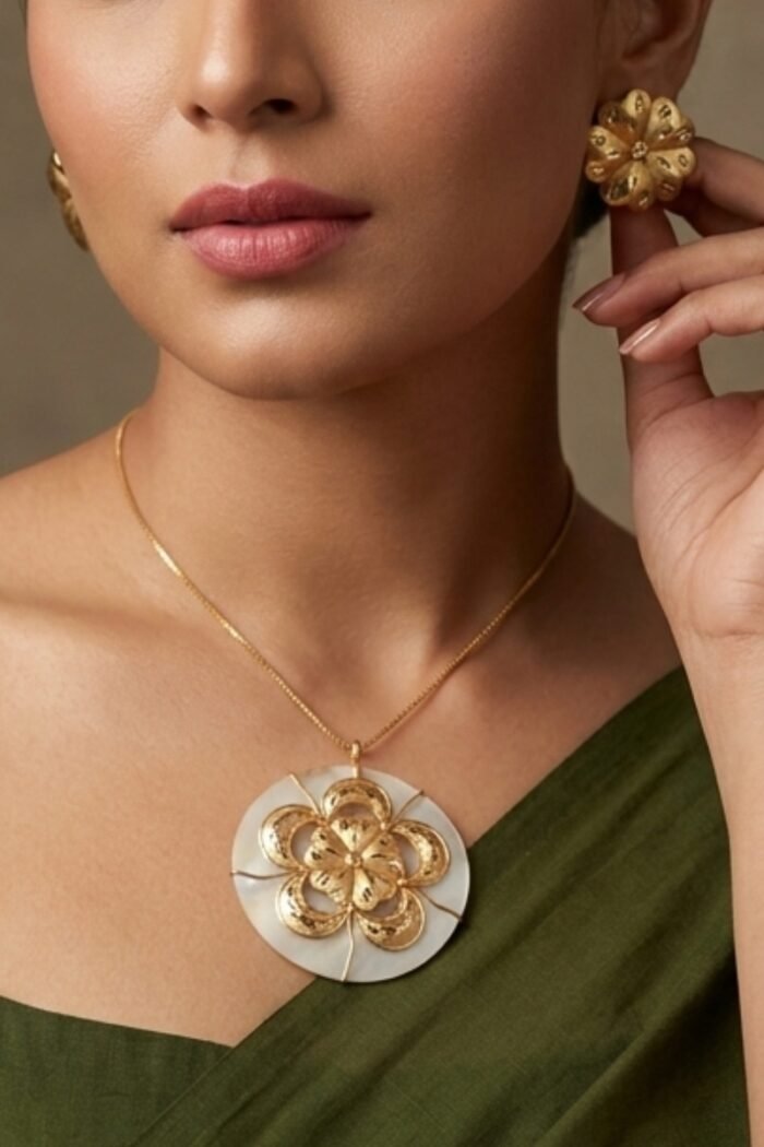 Gold Polish Shell Pendant Set.