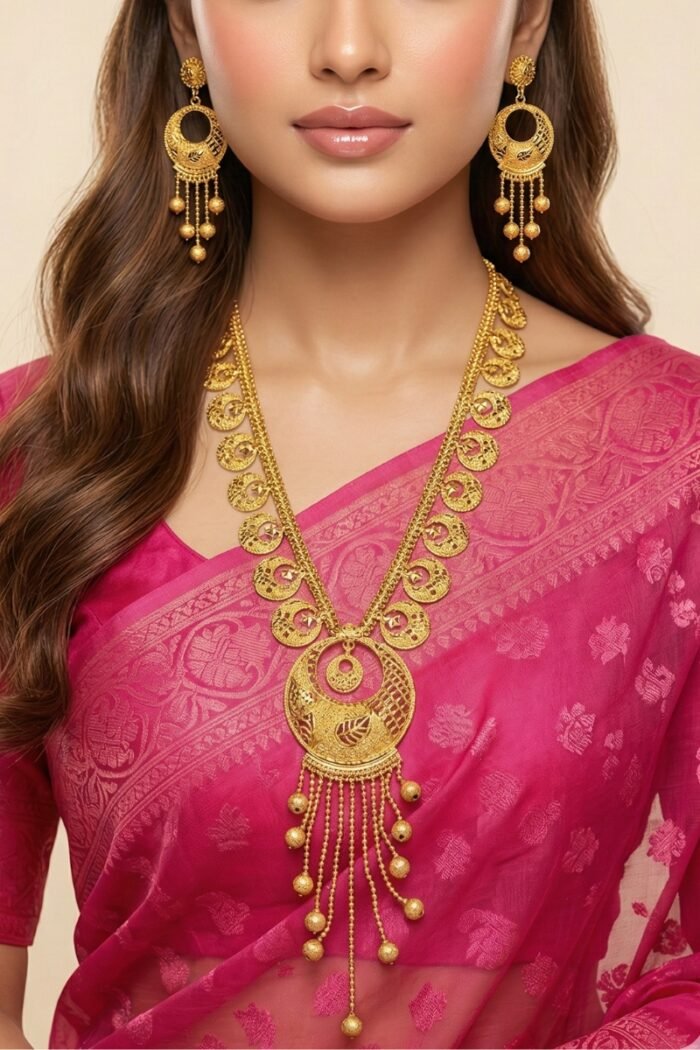 Gold Polish Long Necklace Set.