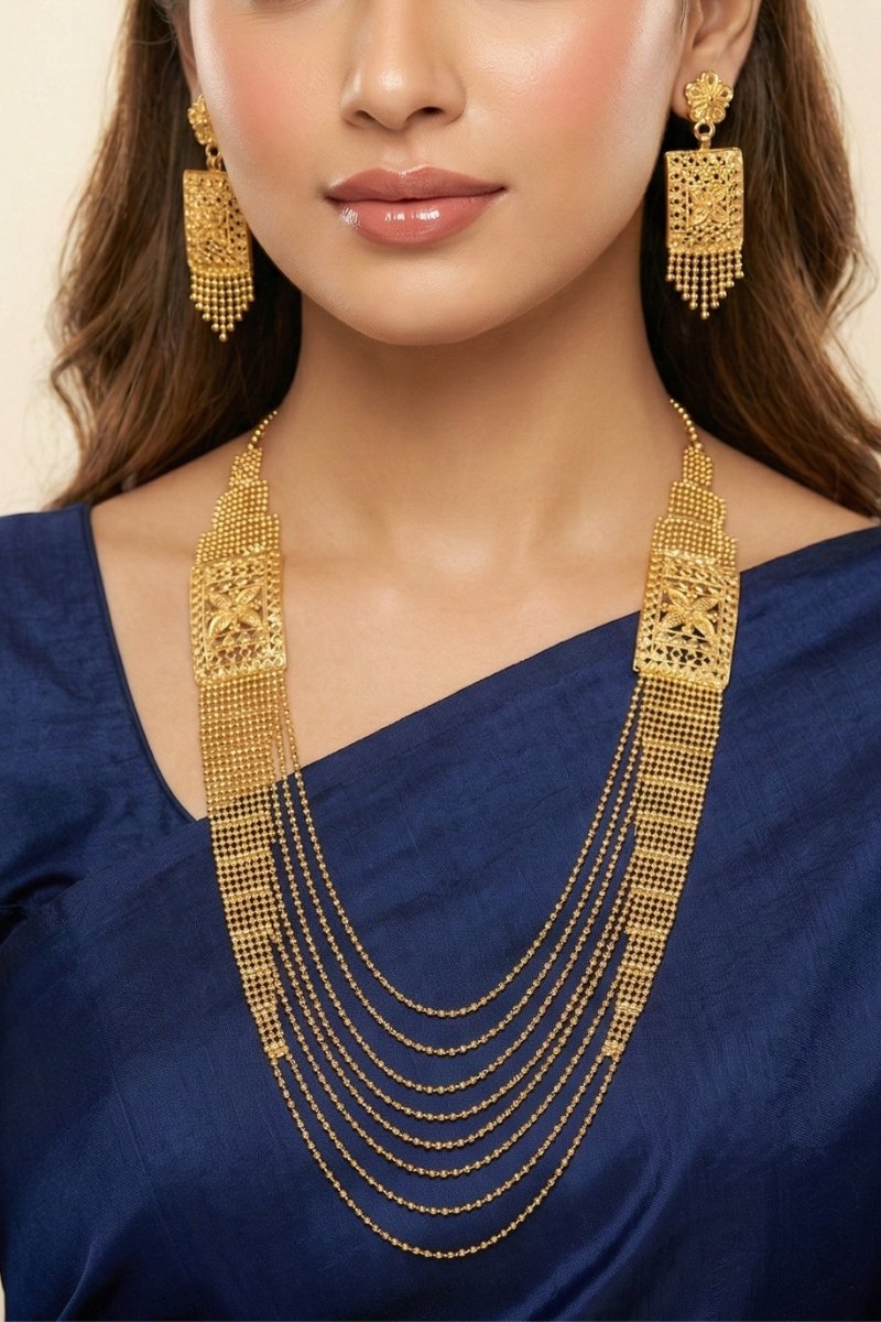 Gold Polish Long Necklace Set.