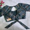 This is a Blue Multi Color Bandhni Printed Blouse. It is Leaf Neckline in Frontside and Key-Hole Backside with a Bow. This is a Princess Cut Padded Blouse. This Blouse is Glass Sleeve and Back Open. You can team it up with any contrast colored Printed/Traditional Saree.