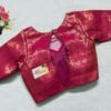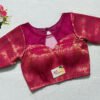 This is a Hot Pink Color Brocade Blouse. This is Illusion Neckline in Frontside & Keyhole Neckline in Backside. This is a Princess Cut, Padded, Glass Sleeve Blouse with Back Open. You can team it up with any contrast-colored Traditional/Printed Saree.