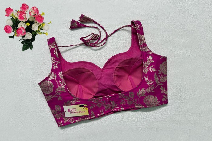 This is a Magenta Color Brocade Blouse. This is Sweetheart Neckline in Frontside & U-Neckline in Backside with Tie-Up. This is a Princess Cut, Padded, Sleeveless Blouse with Back Open. You can team it up with any contrast-colored Traditional/Printed Saree.