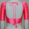 This is a Pink Color Raw Silk Blouse. It is Sweetheart Neckline in Frontside and U-Neckline in Backside with Tie Up. This is a Princess Cut Padded Blouse. This Blouse is Glass Sleeve and Back Open. You can team it up with any contrast colored Printed or Traditional Saree.