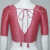 This is a Pink Color Raw Silk Blouse. This Blouse is V-Neckline in both Frontside and Backside with Tie-Up. This is a Princess Cut Padded Blouse With Plain Motif. This Blouse is Glass Sleeve and Back Open. You can team it up with any contrast color Traditional/Printed Saree.