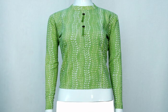 Be the first to review “Parrot Green Color Cotton Jacket Blouse”